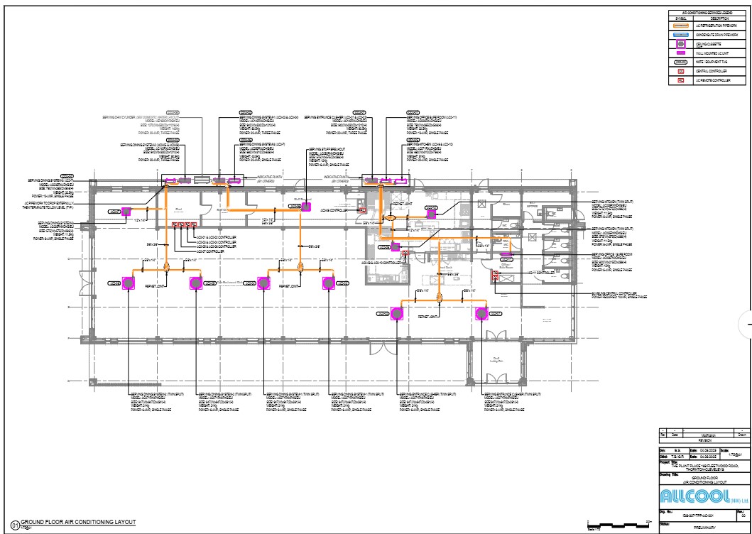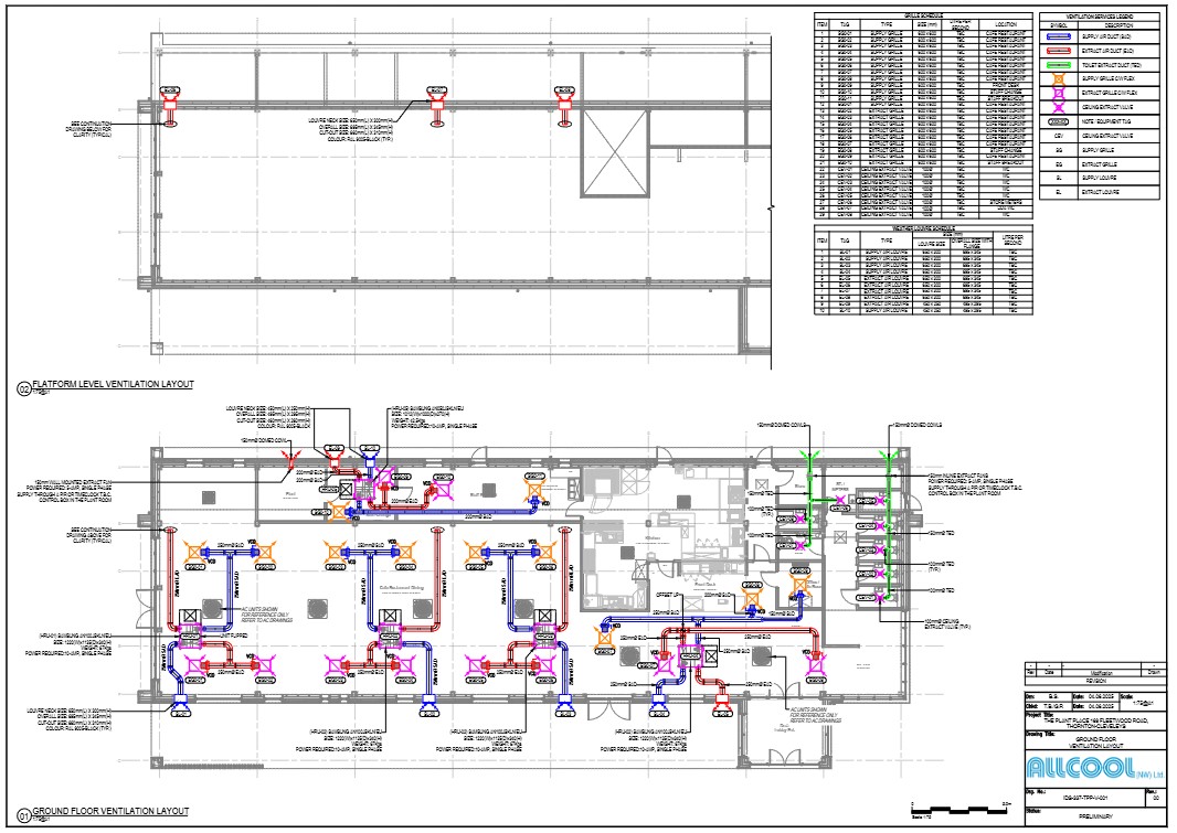 Drawings were provided and submitted for approval prior to latter stages of detail, these included lighting layouts, HVAC drawings and steel support drawings for the upper floor. Should you have a project where numerous discipline drawings are required for building construction and reconfiguration please get in touch by email or phone today.