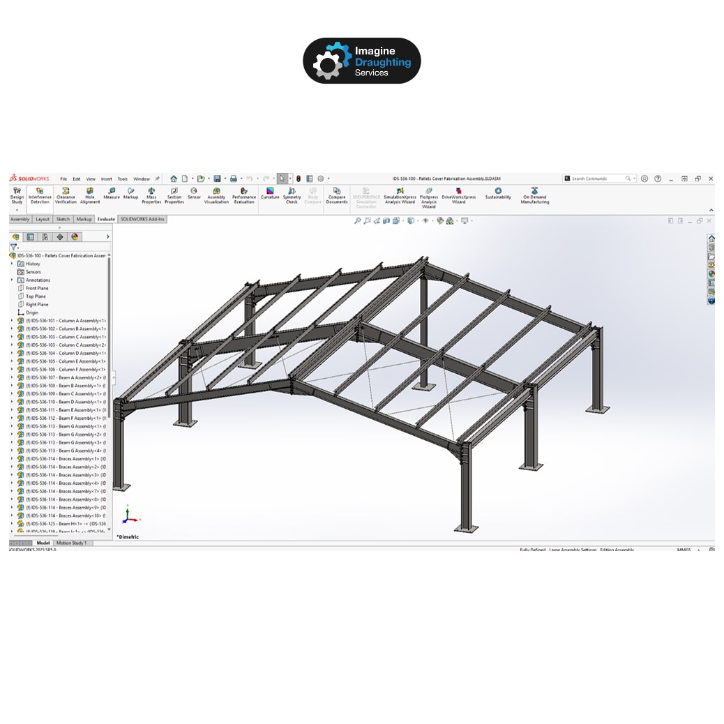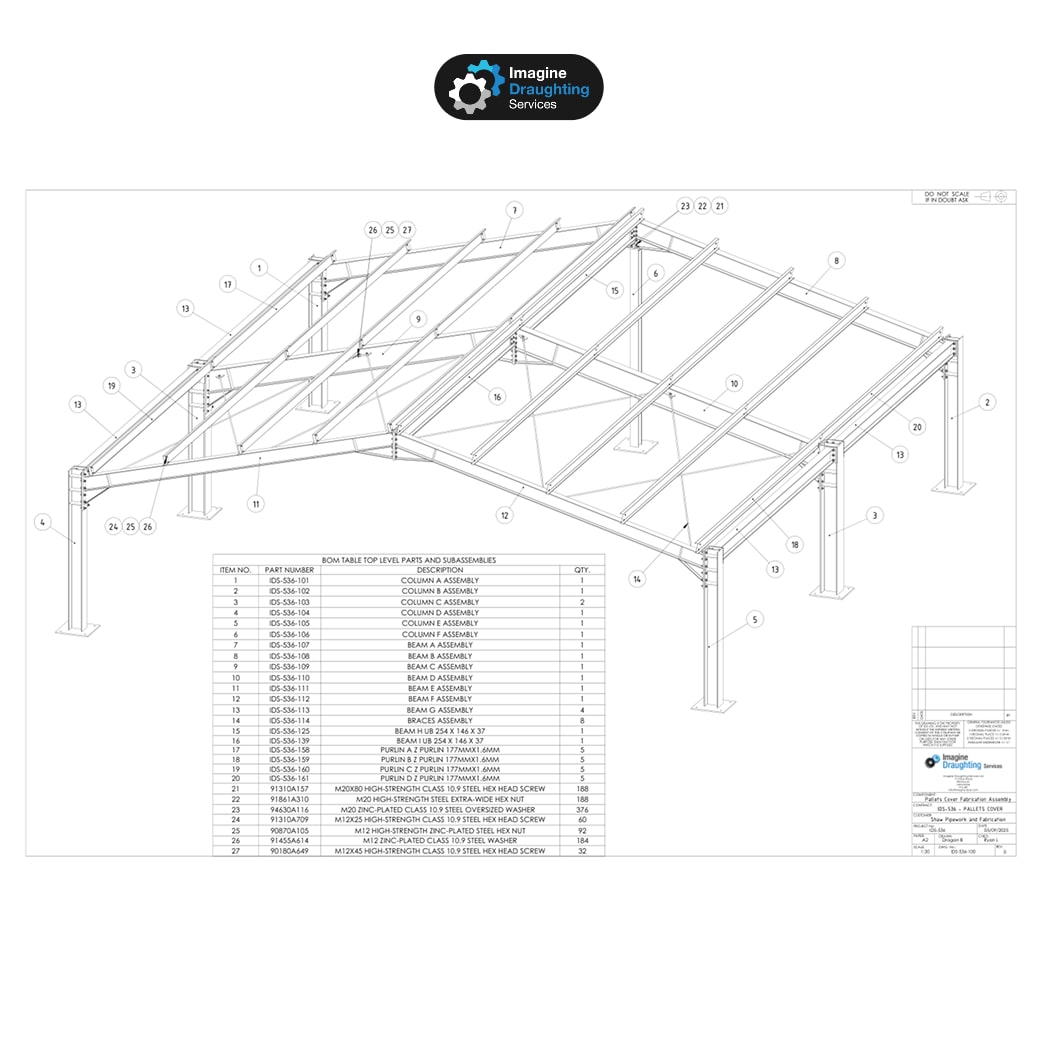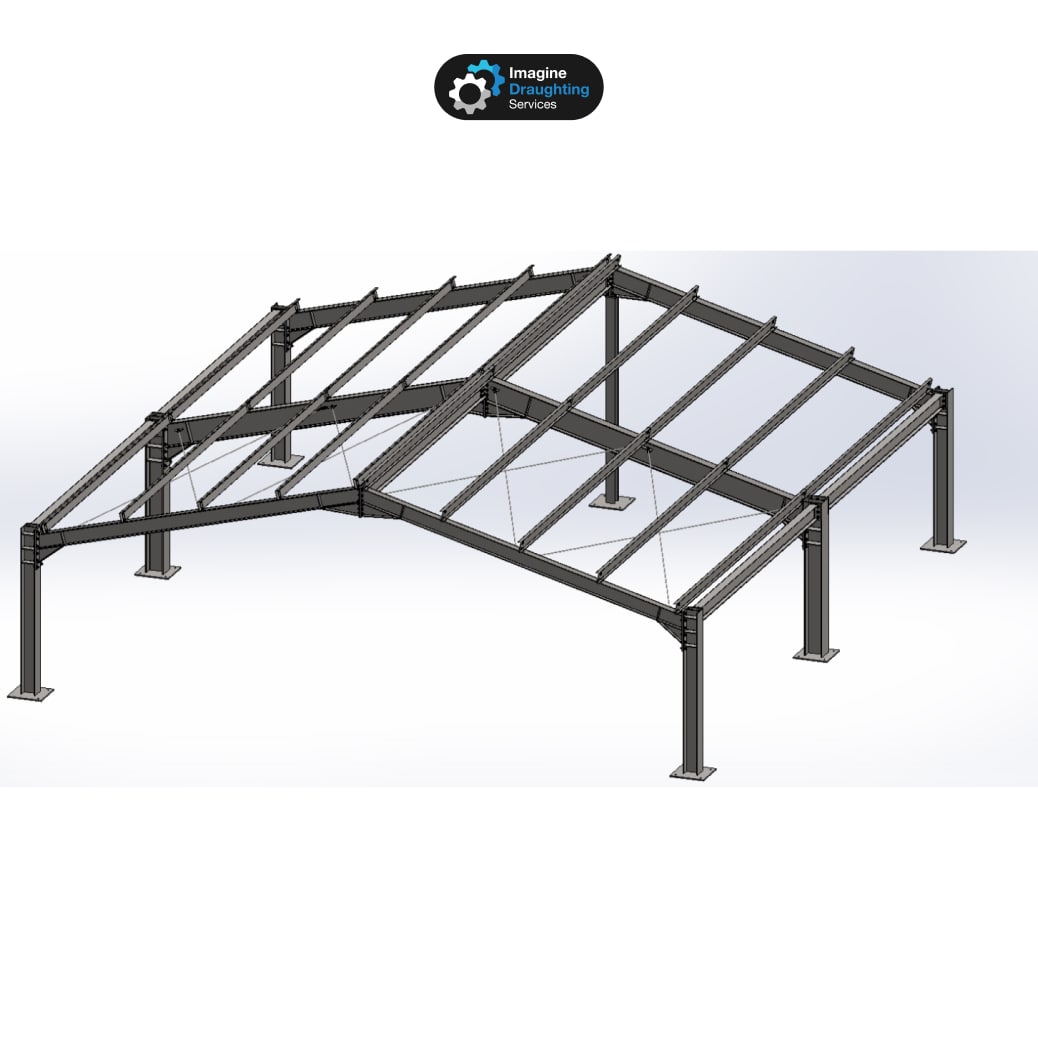 Imagine Draughting Services provided full 3D CAD design and fabrication drawings for a small steel structure used as a warehouse and pallet cover.